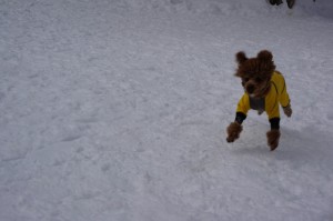 軽く圧雪された、お宿のドッグランを楽しそうに走っているのを見ると、ここまで5時間のドライブの疲れも吹き飛び、